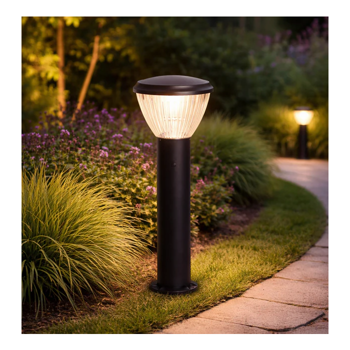 Baliza solar LED diseñada para iluminación decorativa y funcional en exteriores, ideal para jardines, senderos, accesos y áreas verdes. Funciona de manera autónoma gracias a su panel solar integrado, proporcionando una iluminación cálida y eficiente sin necesidad de conexión eléctrica.Características Técnicas: Temperatura de color: 2700 K (luz cálida) Tecnología: LED de alta eficiencia Alimentación: Energía solar Panel solar: 6 V / 3 W Batería: Litio recargable 3,7 V / 4000 mAh Encendido: Automático mediante sensor crepuscular Autonomía: Dependiente de la carga solar diaria Instalación: Fijación al suelo o superficie sólida Uso: Exterior Ventajas: Iluminación ecológica y de bajo consumo No requiere cableado ni obras Luz cálida ideal para ambientación Funcionamiento automático día/noche Diseño moderno y resistente para exteriores La Baliza LED Solar “Nukus” es una solución eficiente y estética para realzar espacios exteriores con una iluminación cálida, segura y sustentable.