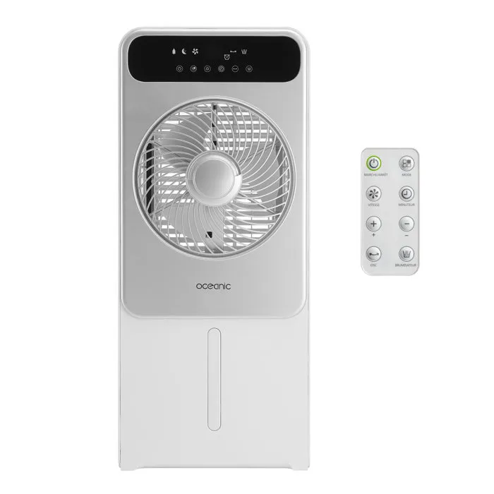 Oceanic - Ventilateur brumisateur 3 en 1 - 50W, 23 cm - Moteur DC - Affichage LED, télécommande, minuterie 9h - Gris et blanc