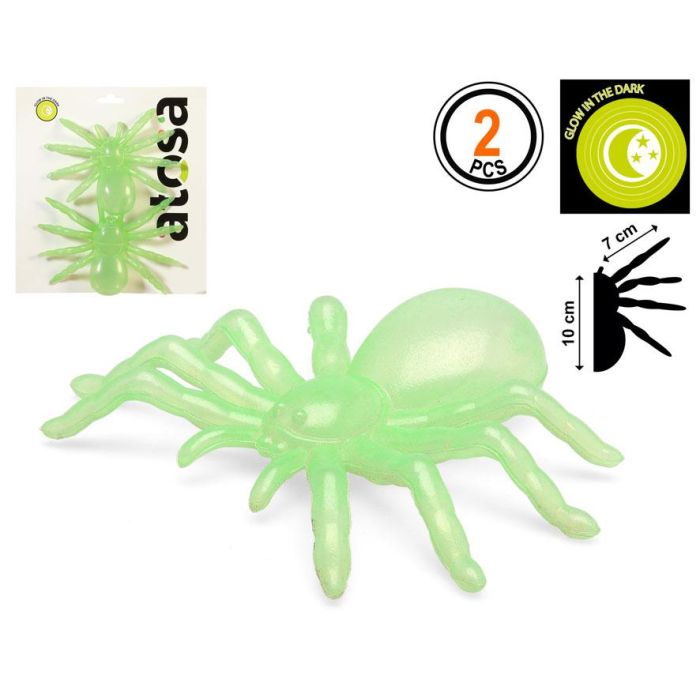 Pack de 2 Araignées Fluorescentes Vertes Glow in the Dark de 10 cm pour Halloween - Décoration Effrayante Luminescente