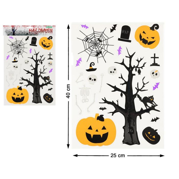 Pack de Décoration Vinyle Halloween avec Citrouilles, Toiles d'Araignée, Crânes et Chauves-Souris - 40 x 25 cm
