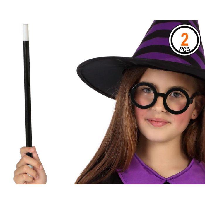 Pack de Déguisement Magicien - Varita Negra et Gafas Redondas pour Sorcier ou Enchanteur - Accessoire Costume Mascara