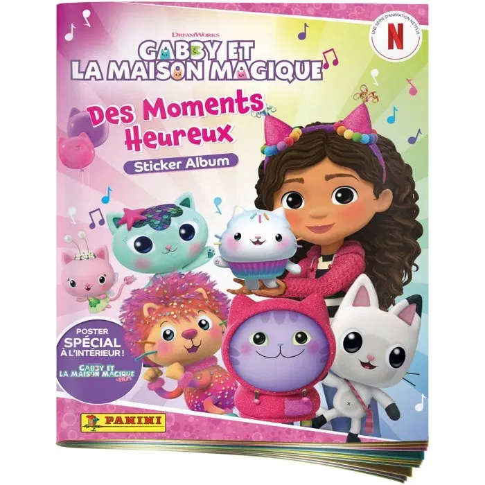 - Description du produit: Cet album est composé de 32 pages. Plonge dans l’univers merveilleux de Gabby la Maison Magique avec la nouvelle collection officielle de stickers Panini ! Retrouve Gabby et ses amis les chatons dans chaque pièce de la maison pour partager des activités créatives, gourmandes ou relaxantes : bricole avec Baby Box, cuisine avec Cakey, ou détends-toi avec Mercat dans un spa féérique ! Ce superbe album de 32 pages est accompagné d’un poster collector entièrement dédié au tout premier film de Gabby, avec des images exclusives de son incroyable voyage à Cat Francisco. 192 stickers à collectionner, dont de nouveaux visuels issus des saisons 10 et 11, un personnage inédit (Marty Party), et plein d’activités interactives à découvrir. Une collection ludique, créative et 100 % chat-tastique ! *Stickers répartis aléatoirement dans les pochettes.