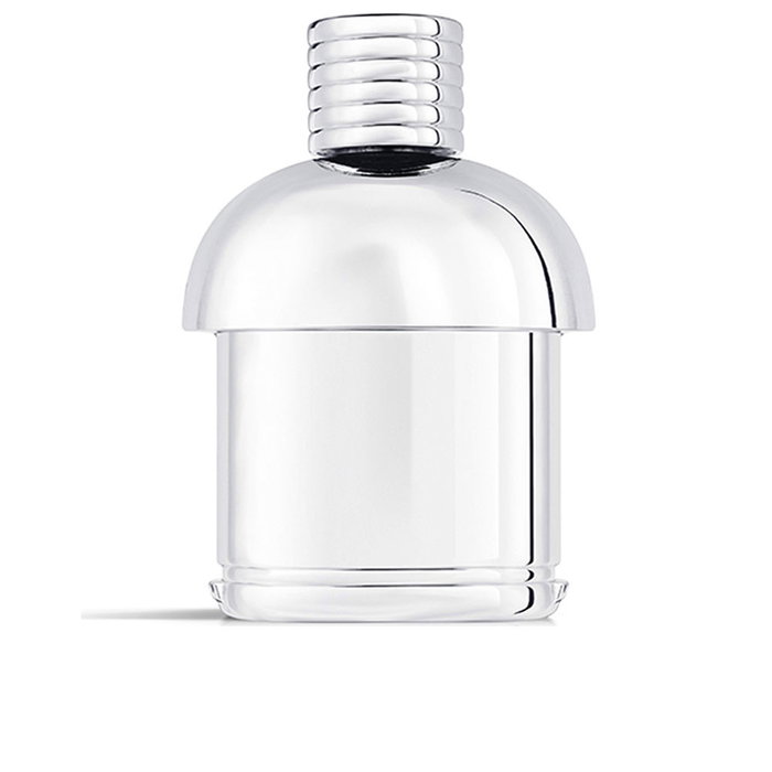 Le flacon, au design unique inspiré des montagnes, est orné d'un manchon et d'un bouchon argentés, reflétant les racines alpines de Moncler et son emblématique doudoune.