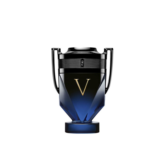 Le flacon est une véritable œuvre d'art qui incarne le succès. Il conserve la silhouette emblématique de la ligne Invictus tout en arborant une teinte dorée éclatante avec des motifs en relief, symboles de puissance et de détermination.
