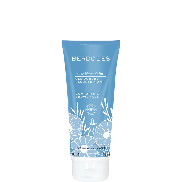Découvrez le gel douche Musc Blanc et Lin de la maison française Parfums Berdoues. Ce produit de soin corporel offre une expérience sensorielle unique pour votre routine quotidienne.