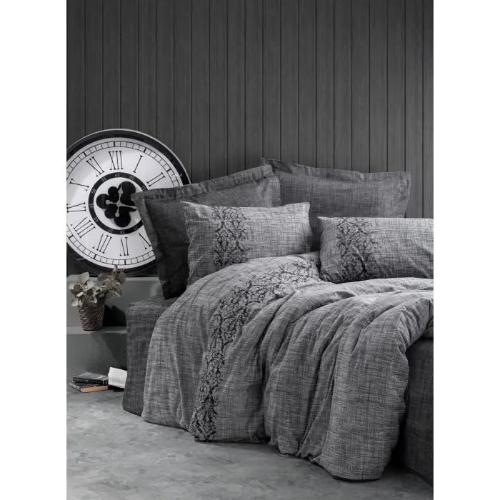 Parure de lit King - 1 housse de couette 220 x 240 cm + 2 taies d'oreiller 60 x 60 cm - Coton renforcé 100% - Gris - 145 fils