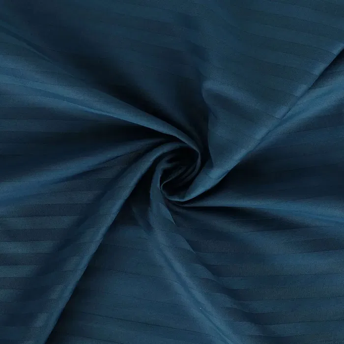 Parure de lit 1 place satin imprimé rayures bleu - Housse de couette 140 x 200 cm + 2 taies d'oreiller 60 x 60 cm