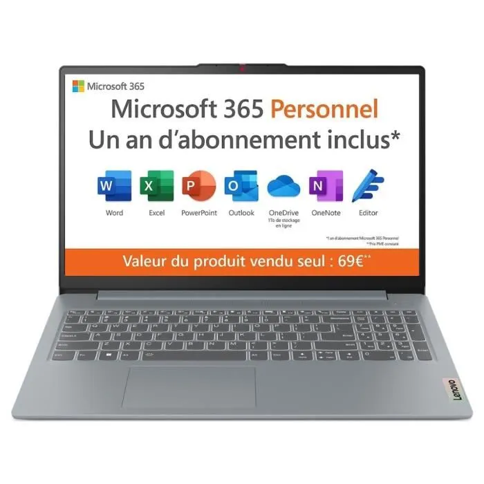 PC portable LENOVO IdeaPad Slim 3 15IAN8 | Windows 11 - 15" FHD - Intel N100 - RAM 4 Go - SSD 128 Go - AZERTY