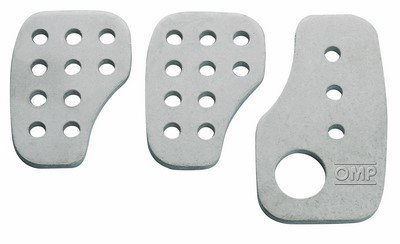 Pédale complète OMP 3 en aluminium lisse, adaptée à un usage en rallye, déjà perforée et fraisée, et peut être moulée selon les besoins.