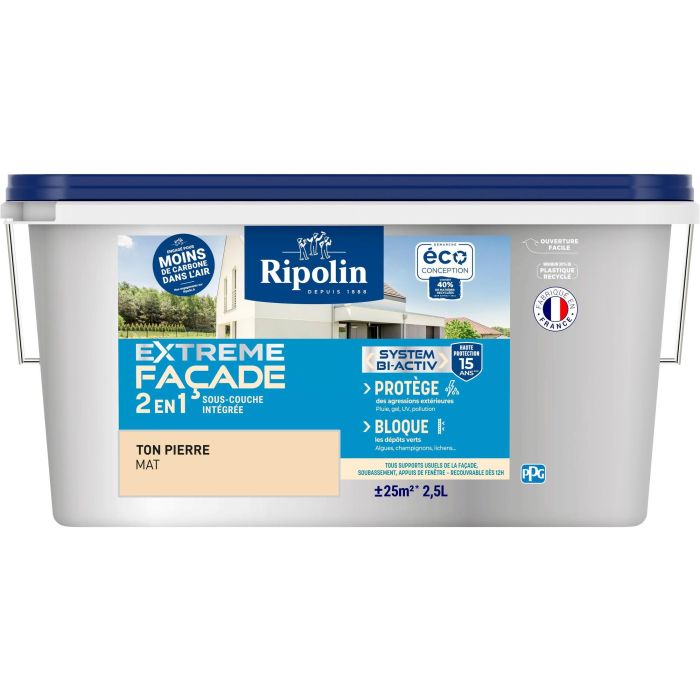 Peinture extreme façade 2 en 1 - Ton Pierre - Mat - Ripolin - 2,5L