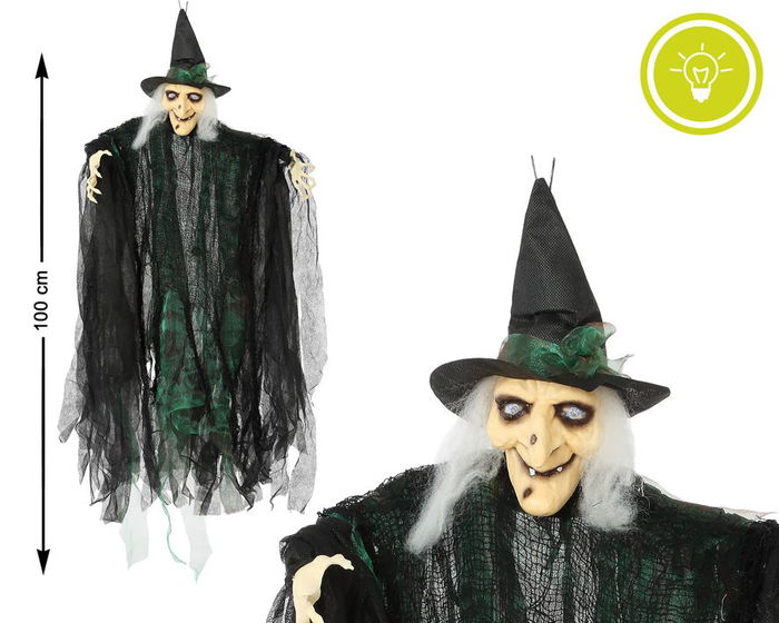 Décoration d'Halloween, Figurine de Sorcière Suspendue avec Lumière, Robe Noire et Verte, 100 cm