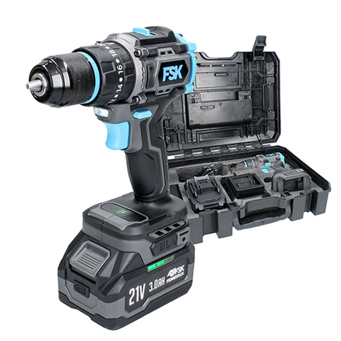 La perceuse à percussion Ferrestock est un outil polyvalent conçu pour le perçage et le vissage sur une grande variété de matériaux, équipée d’un moteur sans balais (brushless) qui optimise l’efficacité, la durabilité et réduit l’entretien lors d’utilisations prolongées. Elle fonctionne avec une batterie lithium-ion 21 V 3,0 Ah, offrant une excellente autonomie et puissance, adaptée aux projets domestiques comme professionnels. Elle dispose de deux vitesses mécaniques (0-400 tr/min et 0-1 400 tr/min), de 20+2 niveaux de couple et d’un couple maximal de 40 N·m, permettant un réglage précis selon chaque tâche. Le mandrin à cliquet en fer assure une fixation solide, acceptant des forets jusqu’à 10 mm pour bois, acier ou brique, démontrant sa polyvalence pour le bricolage ou l’installation. Inclut un chargeur de table compatible secteur (220-240V/50Hz, sortie 21V) et se distingue par son design compact et ergonomique, facilitant l’utilisation dans les espaces restreints. Le système à double isolation augmente la sécurité, tandis que la batterie interchangeable et le chargeur fournis garantissent une utilisation continue. Cette perceuse à percussion Ferrestock est une solution fiable et performante pour les utilisateurs exigeants recherchant constance et simplicité d’utilisation dans les outils électroportatifs.