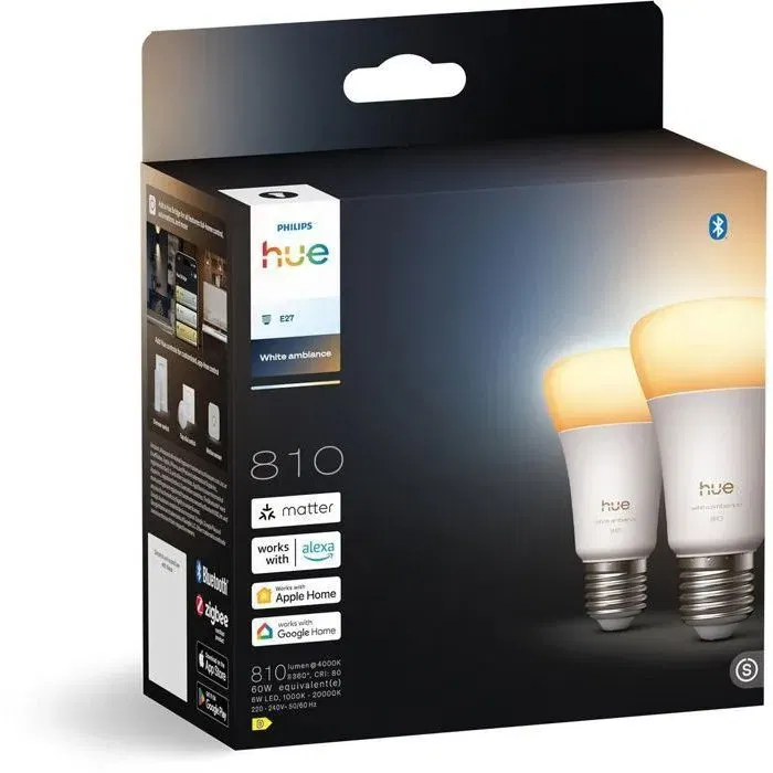 Philips Hue - Ampoules LED Connectées A60 E27 6W Blanc Chaud à Blanc Froid 1000-2000K 810 lm - Pack de 2