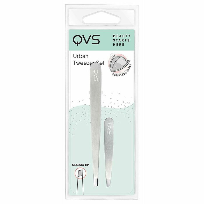 Pince à épiler QVS 100670247 Argenté Pince à épiler Acier inoxydable 2 Pièces