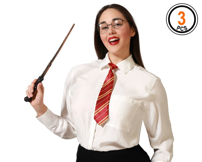 Set de magicien 3 pièces avec chapeau, baguette et nœud papillon - Déguisement spectacle, carnaval ou Halloween