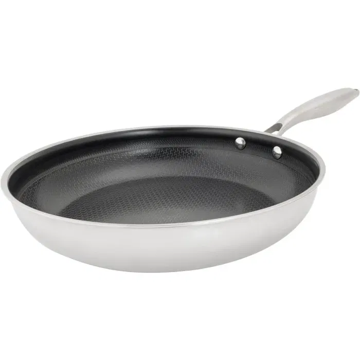 - Description du produit: Fabriqué en 2,5 mm 3PLY-Revêtement antiadhésif céramique sans PFAS avec motif hybride-Élégante poignée en acier inoxydable-Compatible avec toutes les plaques de cuisson, y compris l'induction.