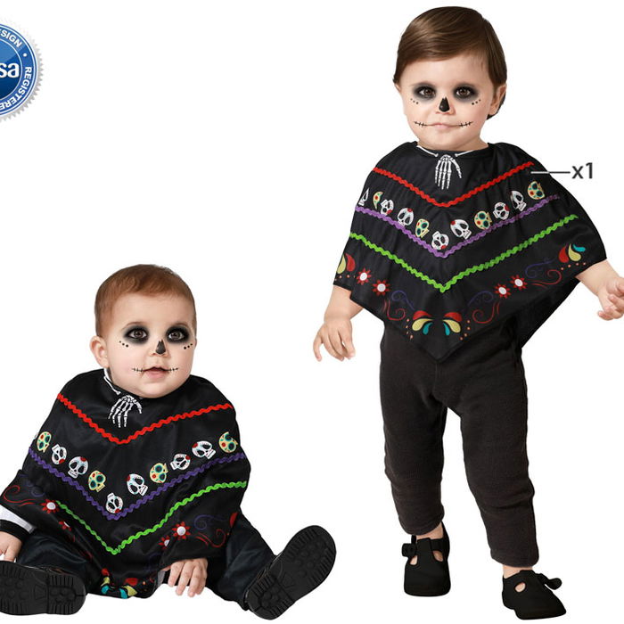 Poncho Déguisement Bébé Enfant Calavera Mexicain Multicolore Halloween Fiesta 6-12 Mois - Polyester Noir
