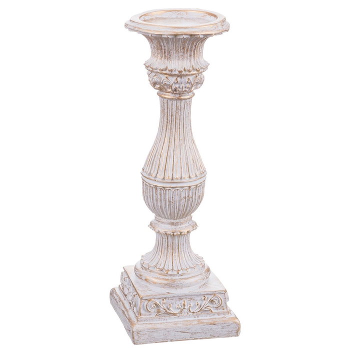 Pot à Bougie Blanc Résine Noël 10 x 10 x 29 cm
