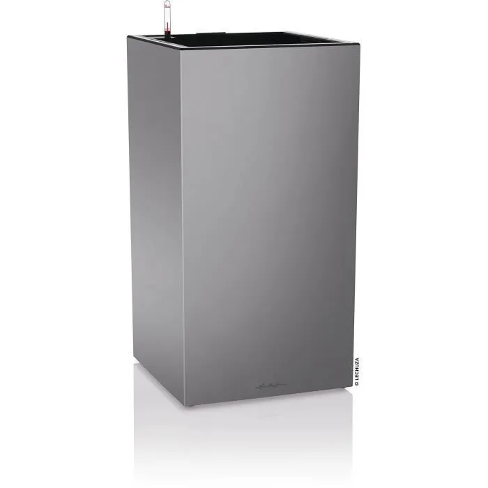 Lechuza Canto Premium Colonne 40 Pot de fleur avec LED 40x40x76 cm Argent Métallisé Kit Complet Système d'irrigation Intégré Résistant aux UV et au Gel
