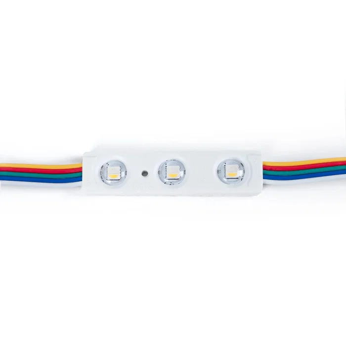 Le module LED RGBWW PRO est conçu pour l'éclairage décoratif et professionnel des enseignes lumineuses, des lettres en relief et des caissons lumineux. Grâce à sa technologie RGBWW, il permet de créer une large gamme de couleurs ainsi qu'un blanc chaud, offrant une plus grande polyvalence pour les projets de signalétique et de décoration lumineuse.