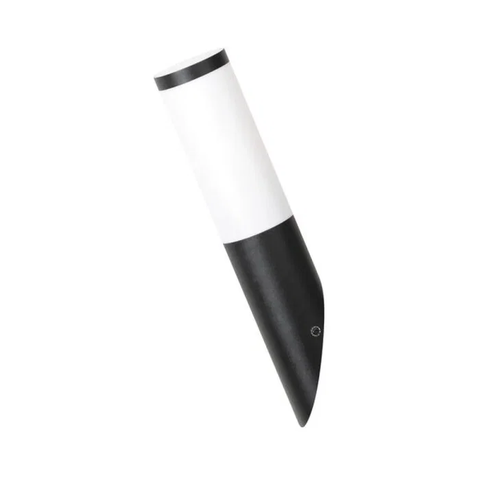 Applique d'extérieur au design moderne, avec 1 prise et une base inclinée. Luminaire de couleur noir mat, en acier inoxydable et plastique, offrant une protection IP44 contre la poussière et les éclaboussures d'eau. Ce luminaire est compatible uniquement avec des ampoules basse consommation d'une puissance maximale de 25W, à culot E27.