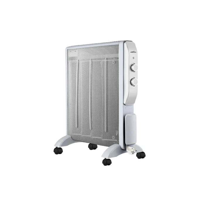 Radiador de Mica eléctrico de la serie ABRIGO en color BLANCO/PLATA. Realizado en metal, policarbonato y mica. Equipado con 2000 watios de potencia repartidos en sus 4 elementos calefactores de mica, y con dos niveles a elegir, 1000w y 2000w, que permiten calentar rápidamente y eficazmente con bajo consumo cualquier estancia, emitiendo calor por ambas caras, de manera segura y silenciosa. Viene con control de Termostato Ajustable, sistema de protección sobrecalentamiento, Antivuelco y luz indicadora de encendido. Se presenta con un diseño elegante y fácil de transportar gracias a su tamaño y a las ruedas que contiene, y posee un útil recogecable en su estructura para una mayor seguridad. Tiene unas dimensiones de 61,5x56x26,5 centímetros. General Color: Blanco / Plata Material: Metal/Policarbonato/Mica Uso (Interior/Exterior): Recomendado para interiores Ahorro de energía: Ahorro de energía Uso (Doméstico/Profesional): Doméstico Certificado CE: Si Certificado Reciclaje: Si Con ruedas: Con ruedas Dimensiones Dimensiones (alto x ancho x fondo): 61,5X56X26,5 cm. Peso Neto: 3890 gr. Peso Bruto: 4735 gr. Medidas embalaje: 66x60x13 cm. Tamaño: L Información Técnica Voltaje: 220-240 V Otros Rejilla de protección calefacción: Rejilla de protección CAJA MASTER (unidades): 1 Calefacción Potencia Máxima: 2000 W Sistema de protección antivuelco: Sistema de protección antivuelco Termostato Regulable: Termóstato Regulable Piloto Luminoso: Piloto Luminoso Con recogecable: Con recogecable Fijación mural y portátil: Portátil Niveles de potencia: 1000 W Y 2000 W Protección contra sobrecalentamiento: Protección contra sobrecalentamiento Elementos: 4 Material de los elementos: Elemento calefactor de mica