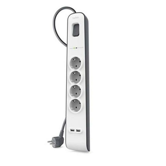 Rallonge 4 prises Schuko avec interrupteur Belkin BSV401VF2M USB x 2 (2 m)
