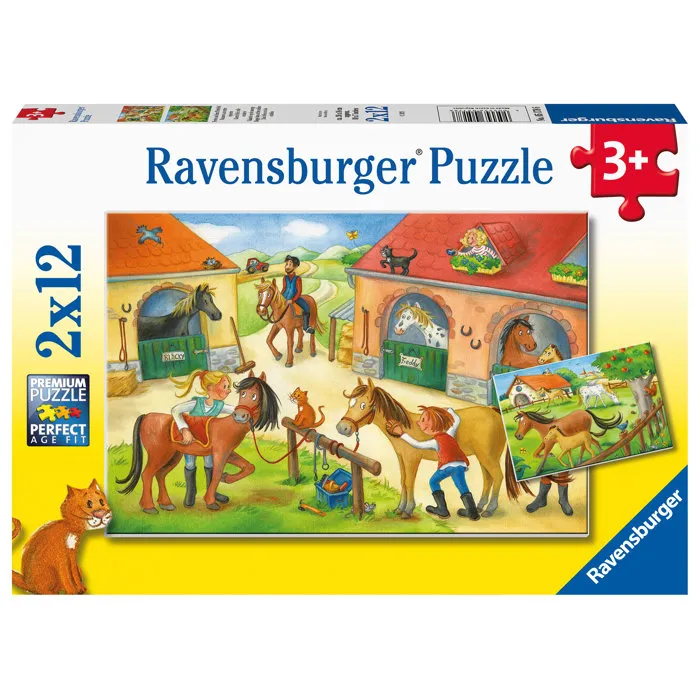 Ravensburger Puzzle enfant - Vakantie op de manege - 2 x 12 pièces (24 pièces) - Animaux et ferme - À partir de 6 ans