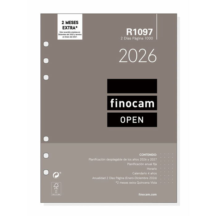 Recharge pour agenda Finocam OPEN R1097 2026 15,5 x 21,5 cm