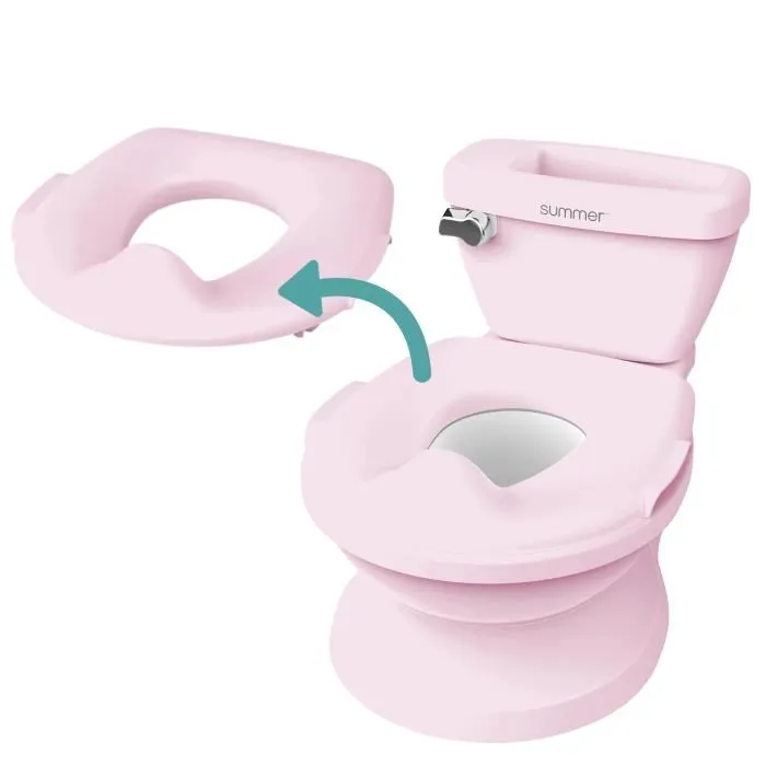L'apprentissage de la propreté est plus facile (et plus amusant) avec cette mini toilette pour enfants ! Conçu pour ressembler a de vraies toilettes pour adultes, ce pot encourage l'apprentissage de la propreté. Avec poignée chromée qui émet un son de chasse d'eau tres réaliste. Couvercle amovible a utiliser comme siege pour toilettes adultes, pour une transition en douceur. Avec compartiment de rangement intégré suffisamment grand pour y mettre livres, tablette, lingettes et tout ce dont votre enfant a besoin pendant son apprentissage de la propreté. Avec protection anti-éclaboussures et facile a nettoyer.