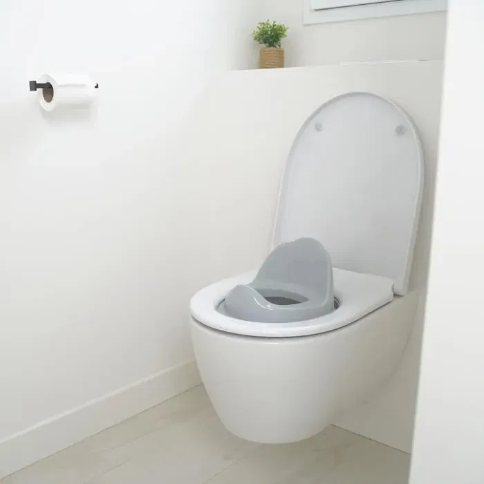 Thermobaby Réducteur de WC LUXE Gris Charme - Apprentissage de la propreté, antidérapant, haut dossier, stable, sans BPA, fabriqué en France