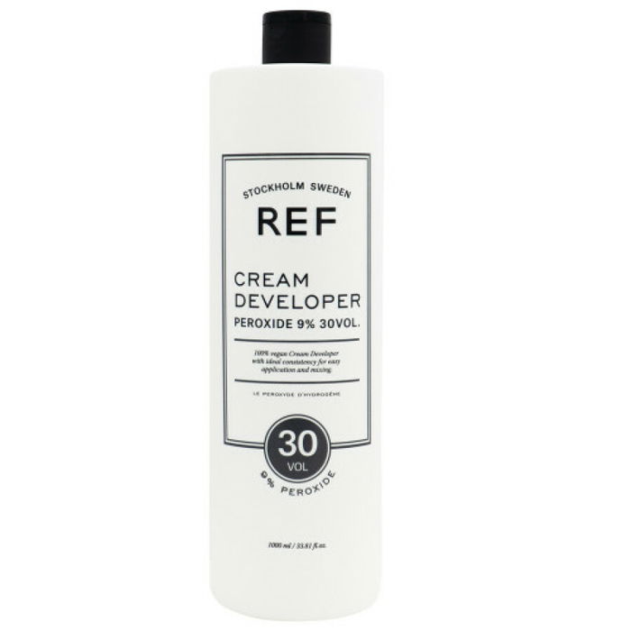 Ce flacon de 1000 ml contient une lotion oxydante professionnelle à 9% (30 volumes) de la marque Ref Stockholm. Spécialement conçue pour les femmes, ce produit est destiné à la coloration des cheveux, permettant le développement des couleurs et la décoloration. Sa formule offre une action fiable et précise pour des résultats homogènes. Idéal pour un usage en salon ou à la maison par des utilisatrices averties.