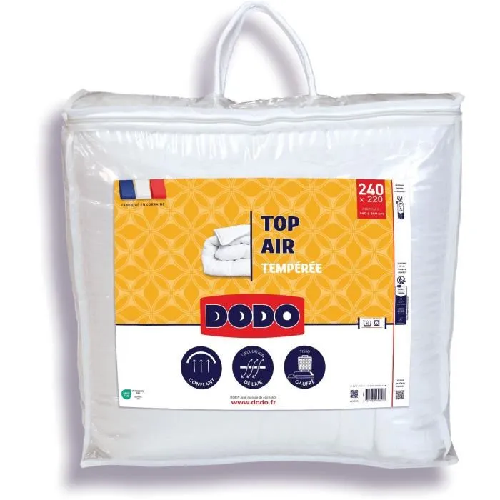 Dodo Couette Tempérée Top Air 220 x 240 cm - 300 g/m² Blanc - Enveloppe 100% Polyester - Taille Lit Double