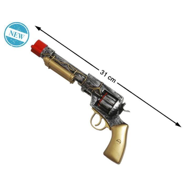 Revolver Steampunk de 31 cm avec Détails Dorés et Tuyauteries Décoratives pour Cosplay et Halloween