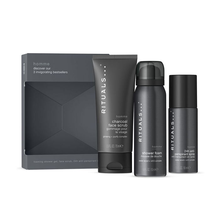 Rituals Coffret Essentiels Homme 3 Unités : Gel Douche Moussant 50ml, Déodorant Spray 50ml, Gommage Visage 70ml