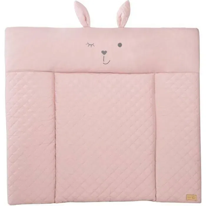 Roba Matelas à langer Style avec coussin de sécurité 85 x 75 cm, visage de lapin Lily, rose, doux et imperméable