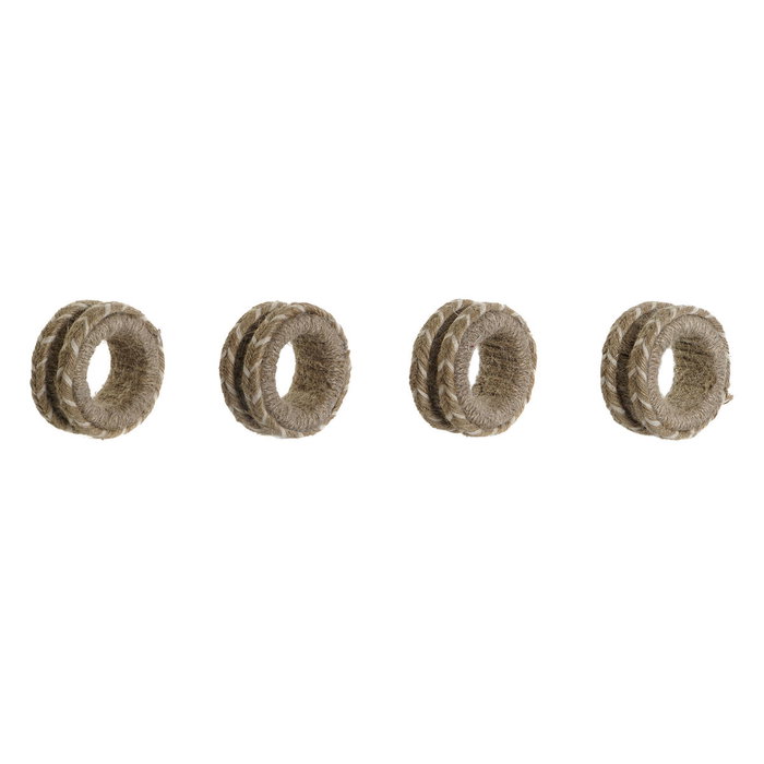 Rond de serviette DKD Home Decor Naturel Jute Bois de manguier 6 x 3 x 6 cm 4 Pièces