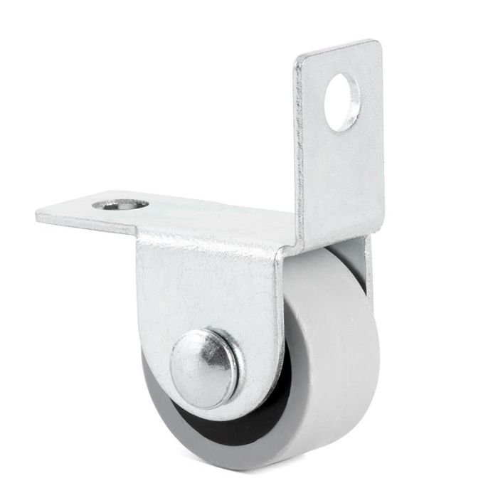 La rueda fija con aro de goma gris, diámetro 25 mm y altura 28 mm con soporte de acero zincado modelo KETY-S sirve para muebles que quieras poner ruedas y así hacerlos móviles.