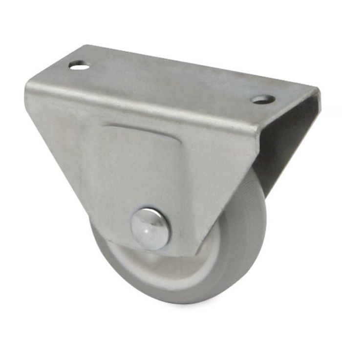 La rueda fija con aro de goma gris, modelo Truman de la marca Q&Q sirve para muebles y estructuras que necesitan ruedas para hacerlos móbiles. Cuenta con un aro de goma gris que proporciona amortiguación y reduce vibraciones durante el desplazamiento.
