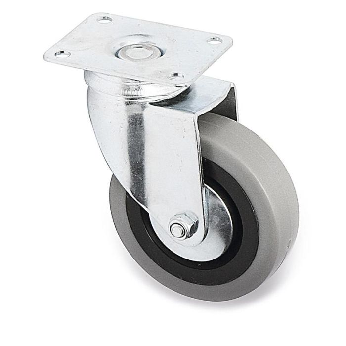 Q&Q Roue Pivotante Jade Plus Ø80mm Caoutchouc Plaque Antihilo Double Rangée Roulement Zincé 60kg