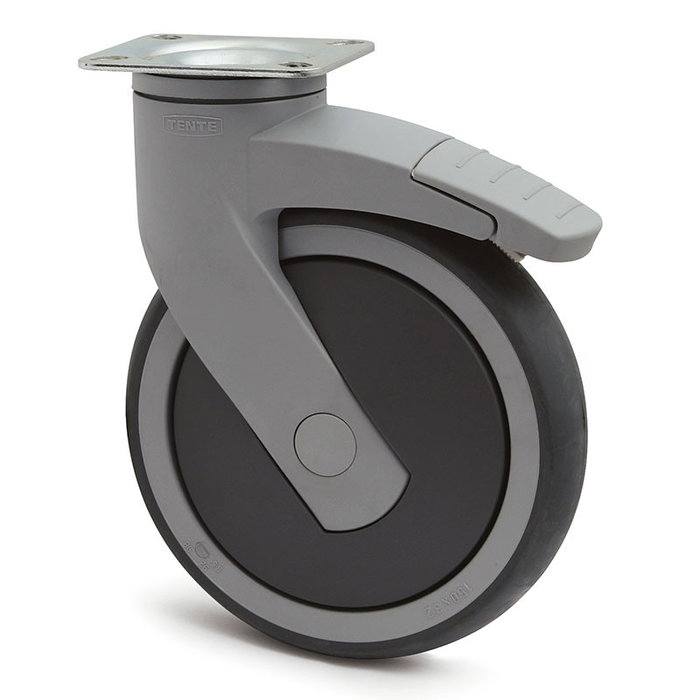 TENTE Roulette pivotante Levina Ø150mm, plaque 77x67, bande de caoutchouc avec frein et protection anti-fil, polypropylène, charge max 100kg