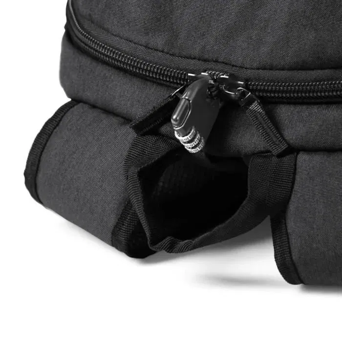 - Caractéristiques: Matériaux intérieurs et extérieurs recyclables et recyclables (r-PET). Pieds rembourrés pour l'ordinateur portable. Dos rembourré et bretelles rembourrées pour un confort élevé. Plus d'options de protection pour les surfaces intérieures et extérieures. 2 sacs en filet séparés pour un pare-pluie et une bouteille d'eau. Convient pour transporter une poignée télescopique ou une valise. Base stable et ouverture principale amovible.