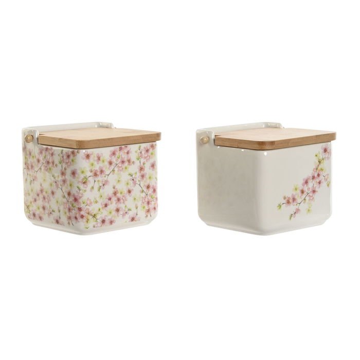 Salière avec couvercle Home ESPRIT Blanc Rose Lila Bambou 750 ml 14 x 12,5 x 12 cm (2 Unités)