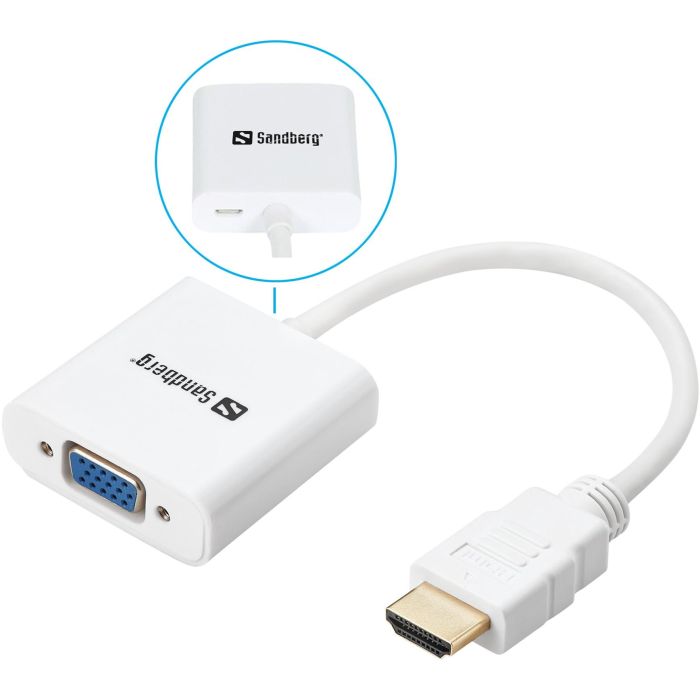 Sandberg HDMI to VGA Converter, VGA (D-Sub), HDMI Type A (Standard), Mâle, Femelle, Blanc, RoHS