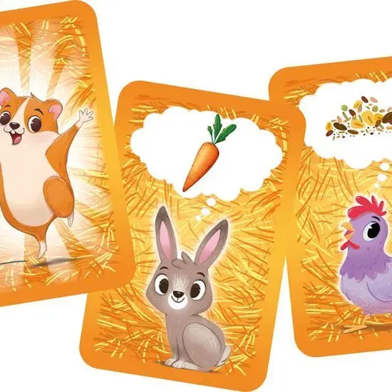 - Description du produit: La catastrophe ! Il y a un trou dans le sac de Harry Hamster et toute la nourriture se disperse dans le foin. Les autres animaux qui s’y trouvent n’attendent que cela pour s’emparer de leurs aliments préférés. Faites voler vos cartes et cherchez les animaux et leurs aliments préférés dans la botte de foin. Les animaux rapportent des points et, lorsque l’aiguille a été trouvée, le hamster peut recoudre son sac.