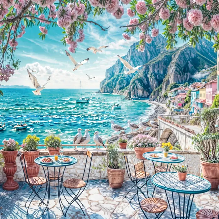 Schmidt Spiele - Puzzle 1000 pièces 'Terrasse en bord de mer' - Paysage à reconstituer - Dès 12 ans