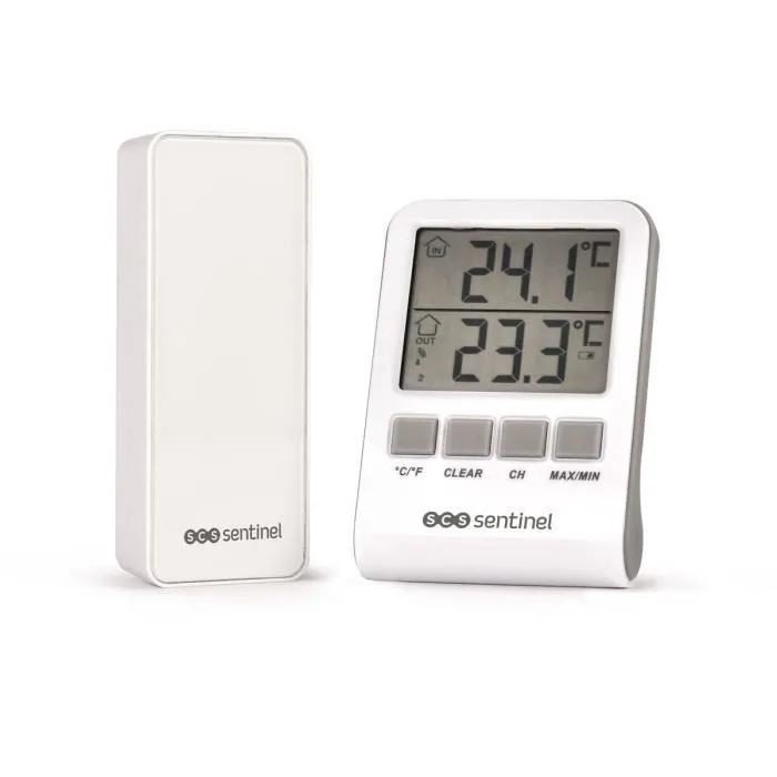 SCS SENTINEL DigiThermo HCN0062 - Thermomètre numérique intérieur/extérieur - Portée 60 m - 433 MHz - Blanc