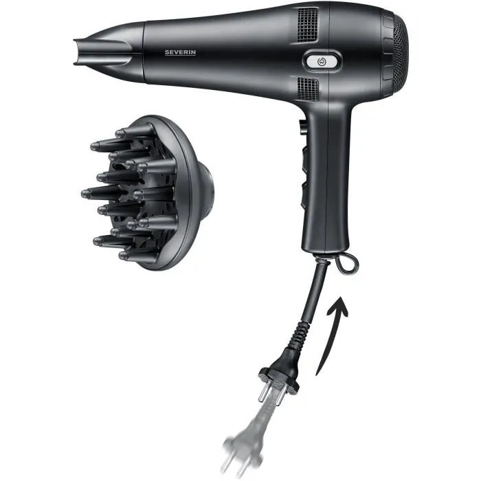 Severin HT 0165 - Sèche-cheveux 2100 W avec câble rétractable - 3 niveaux de température - Diffuseur et concentrateur inclus - Noir
