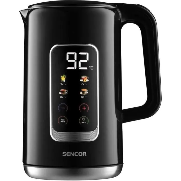 Sencor SWK 0951BK - Bouilloire électrique 1,7 litre 2200 W, inox, contrôle de température 40-100°C, écran LED, triple sécurité