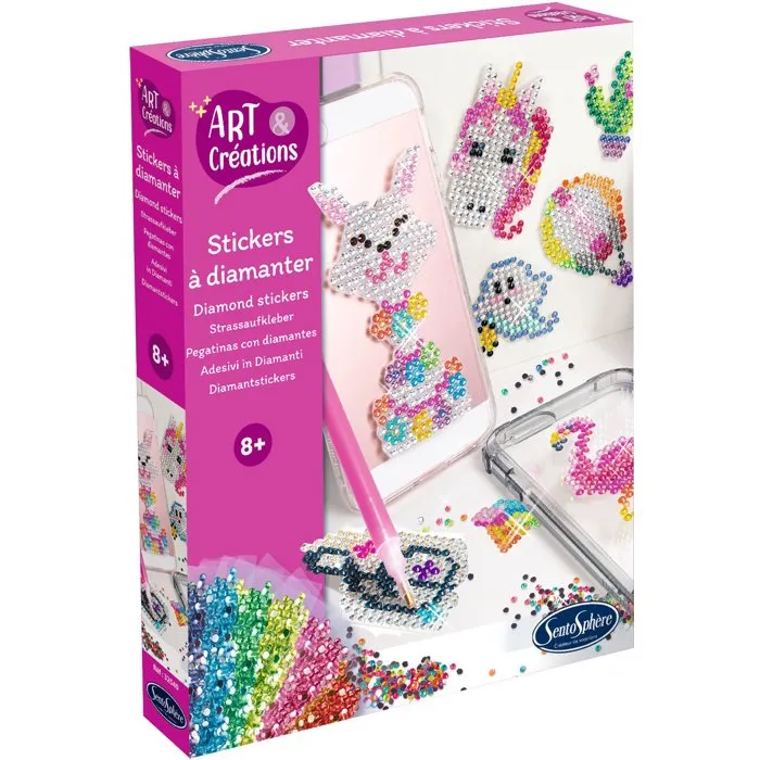 Sentosphere Art & Créations - Kit de Stickers à Diamanter Strass Multicolore, 15 Autocollants Brillants pour Décorer Accessoires, Dès 8 Ans